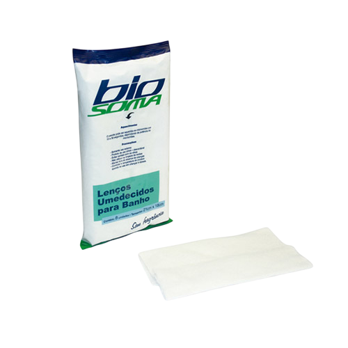 INDICAÇÃO: O LENÇO PARA BANHO NO LEITO BIOSOMA, são lenços sem fragrâncias desenvolvidos para desempenhar uma ação completa de proteção, nutrição, hidratação e higienização da pele. Portanto, é utilizado para banho no leito de pacientes acamados ou higiene geral do paciente.